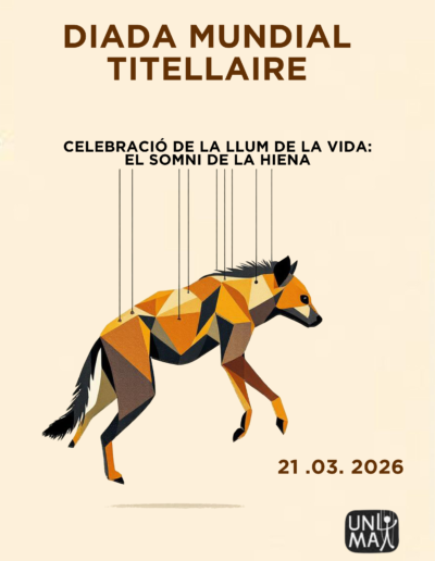 Acabarem aquesta fase de treball el 20 de març a les 18 h amb un assaig obert al públic. Aquest dia és la vigília del Diada Mundial Titellaire, i ens afegirem a tots els titellaires del món per escoltar el missatge escrit en aquesta ocasió per Yaya Coulibaly, de Mali. El Dia Mundial dona lloc a Catalunya a una sèrie d’activitats al voltant del Museu Internacional de Titelles de Catalunya, a Palau-solità i Plegamans.
